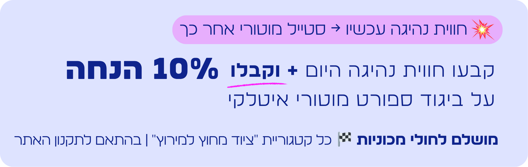 החבילה כוללת גם עלות קורס רישיון נהג ספורטיבי מלא – בעלות של 650 ש"ח - כבר כלול במחיר!